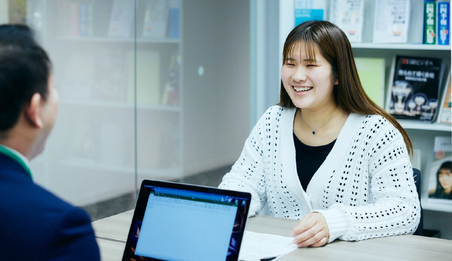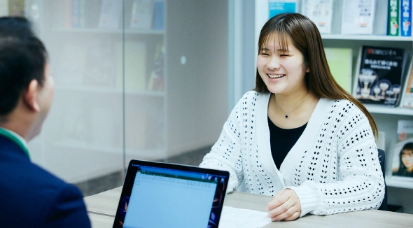 就職支援センターでは、就職全般に関する相談をはじめ、履歴書・エントリーシートの添削や模擬面接指導等の就職活動の支援をしています。進路、インターンシップへの参加、資格取得などに関する個別相談に対応しているほか、就職活動の進め方や準備など、学生が就職活動に必要な情報を得るための就職ガイダンス、就活スキルやビジネスマナーを身につけるための就職支援プログラムを開催しています。