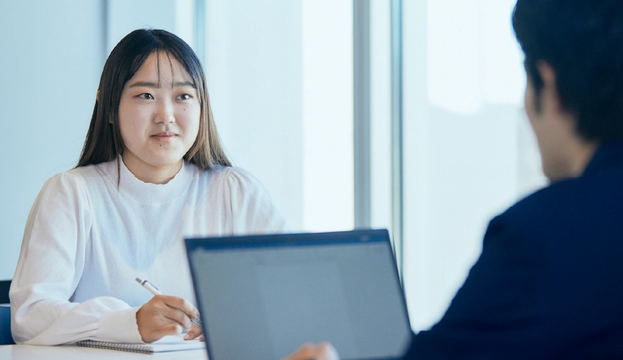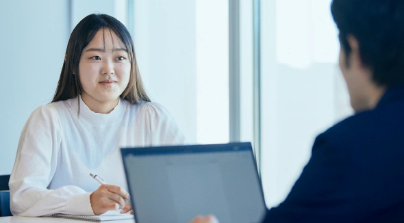 全3年生を対象に進路の専門家であるキャリアカウンセラーと1対1で面談を行う、全員キャリア面談を春と秋の2回行っています。春の面談で、自分の進路のために3年次の1年間をどのように過ごすかをカウンセラーと検討し、秋の面談で、活動が本格化する今後に向けて、プロのアドバイスを得て準備ができるようにしています。1対1で専門家と相談できる機会を早くに全員に用意することで、法学部生が卒業後の進路に向けて適切な時に主体的に活動できるよう、サポートしています。