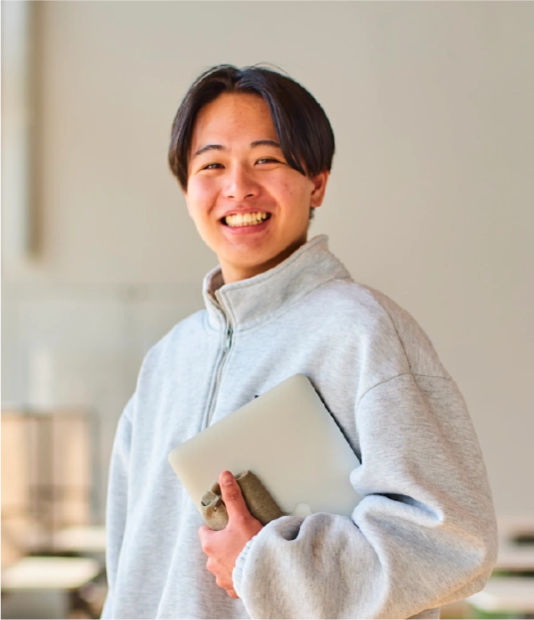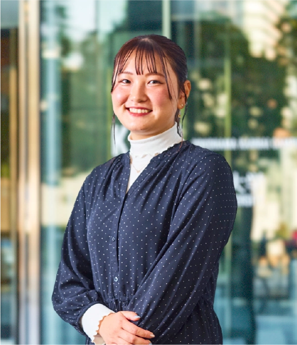 私の将来の目標は、警察官になり社会に貢献することです。中高生の頃から警察官に憧れていたので、実際に働いている人の話を聞ける授業がある地域創生学科に魅力を感じ、入学を決めました。現在履修している「法学特論(立法)」では、法律の制定にかかわった経験のある講師の方が国会や条例について話してくださるので、法律について幅広く学ぶことができています。