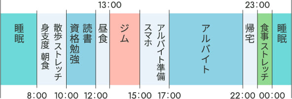 留学時からジム通いを継続。バスケ社会人チームでは年長者と交流しコミュニケーション力を鍛えています。
