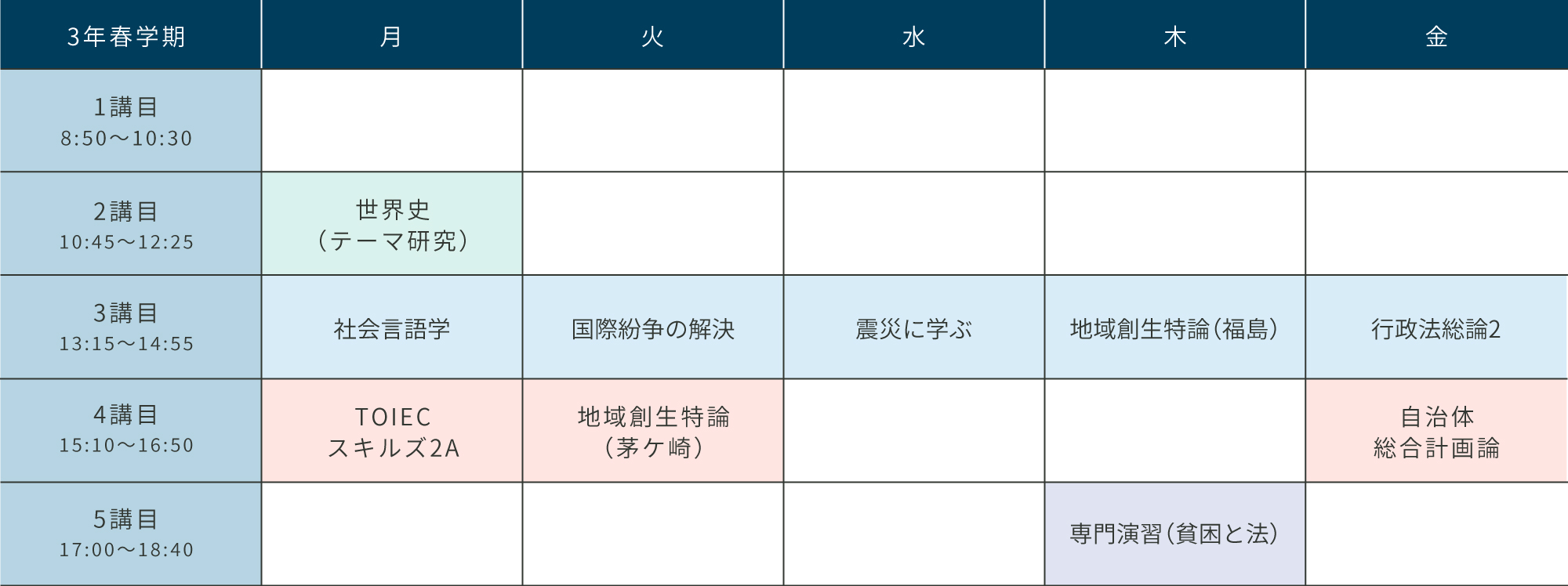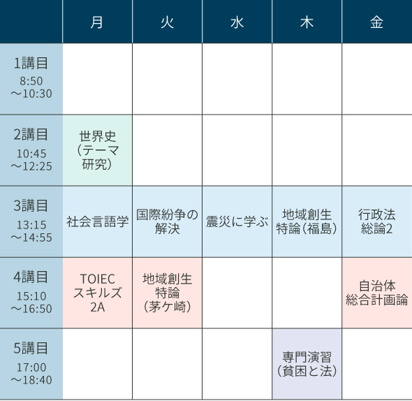 地方自治体への就職を目指し、公務員試験対策も本格化。後悔のない大学生活になるよう、全力で取り組んでいきます。